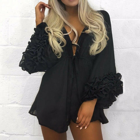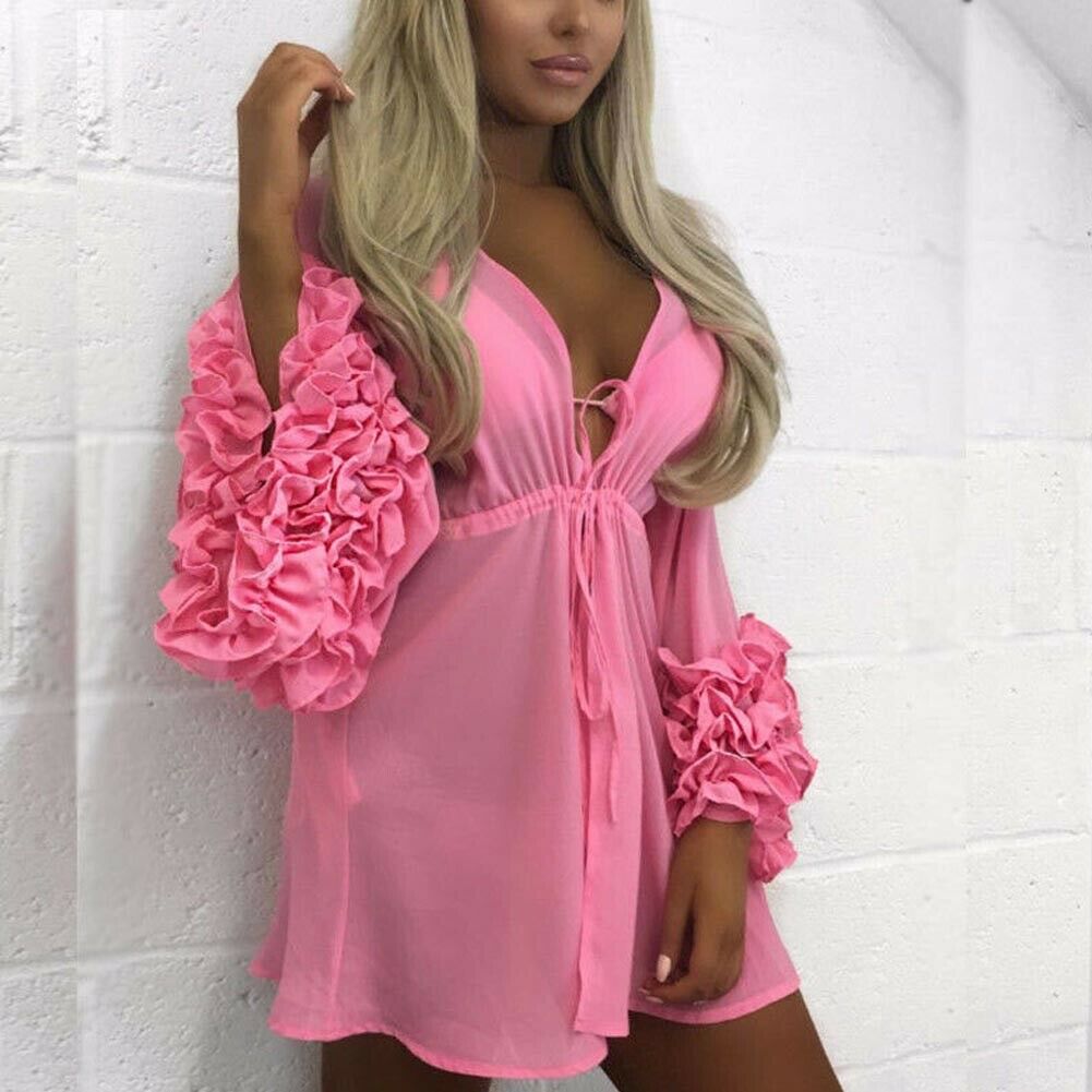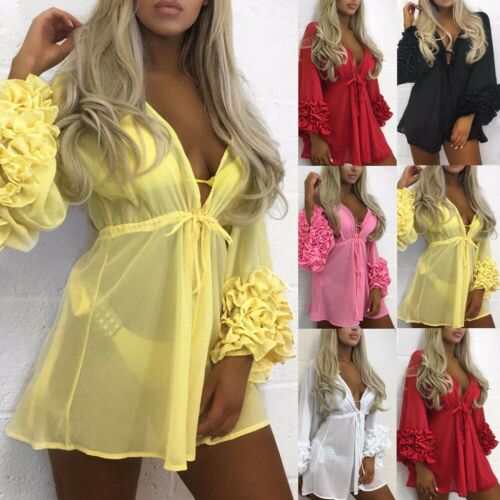 Summer Women Swimsuit Bikini Cover Up Kaftan Sarong Sexy Beach Cover Ups Chiffon Dress Elegant Solid Beach Bathing Suit tunic